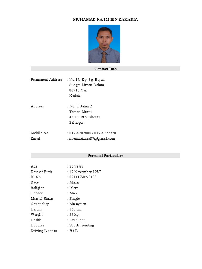 Pengalaman Bekerja Cv Cheah Chui Fen