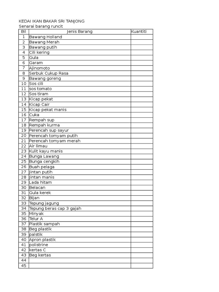 Senarai Barang Keperluan Harian