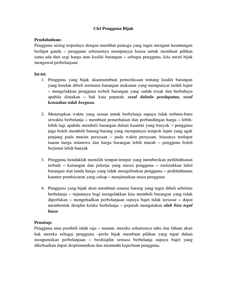 Karangan Cara Menjadi Pengguna Yang Bijak