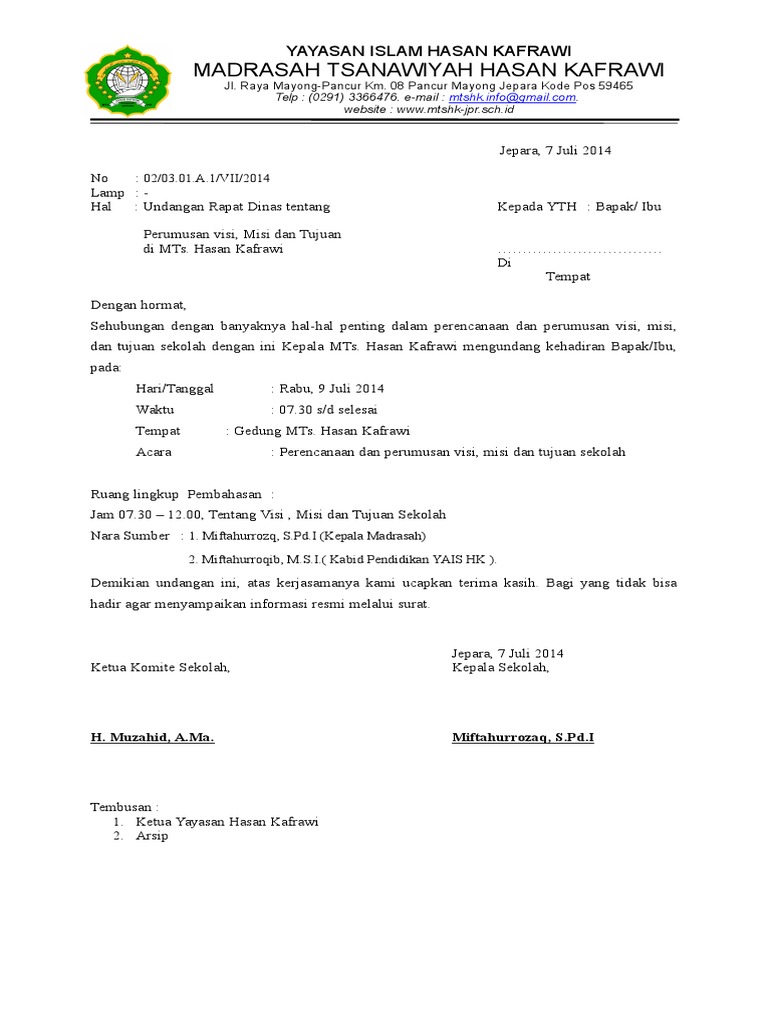 Contoh Surat Undangan Berita Acara Penyusunan Visi Misi Tujuan Sekolah Library Pendidikan