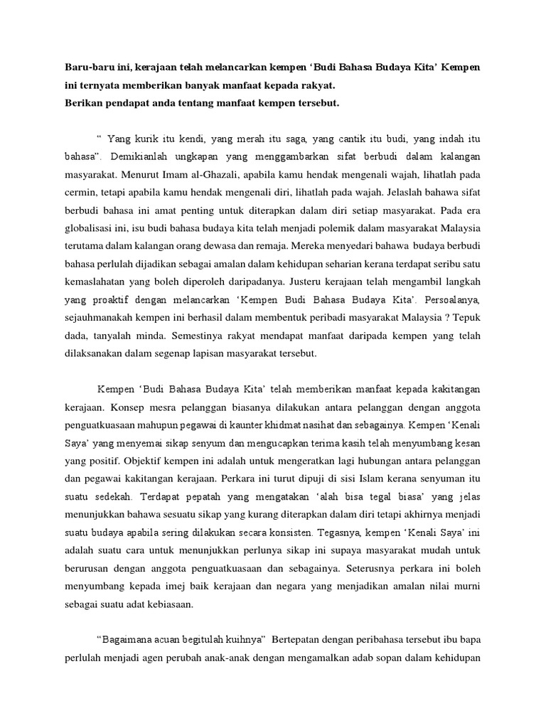 Contoh Karangan Budi Bahasa Budaya Kita Spm