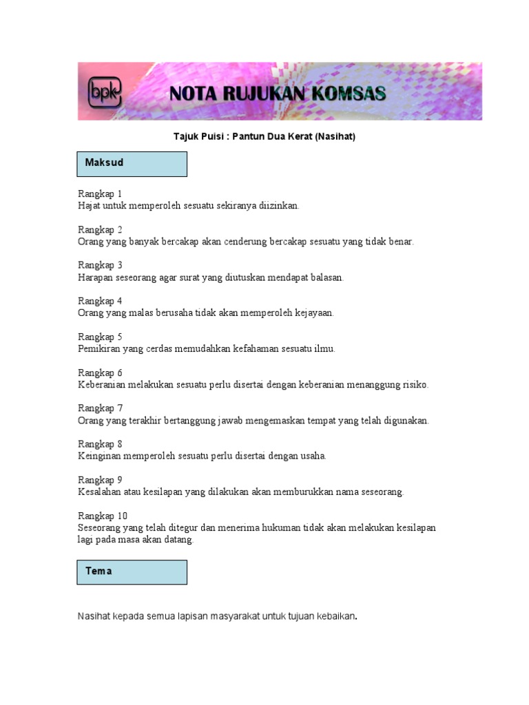 Bahasa Melayu Tingkatan 2 Pantun Dua Kerat Nasihat