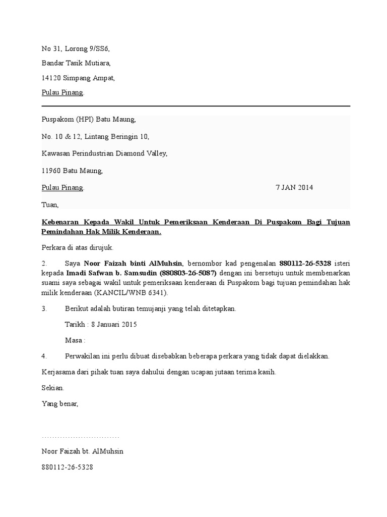 Contoh Surat Wakil Jpj Contoh Surat Wakil Jpj Contoh Surat Cute766
