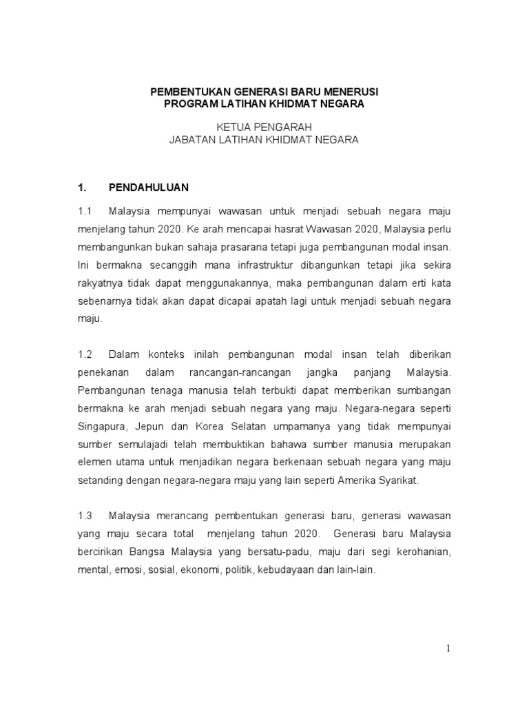 Pembentukan Generasi Baru Menerusi Program Latihan Khidmat Negara