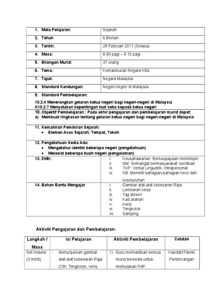 Sejarah Tahun 6 Tajuk 10 Negeri Negeri Di Malaysia