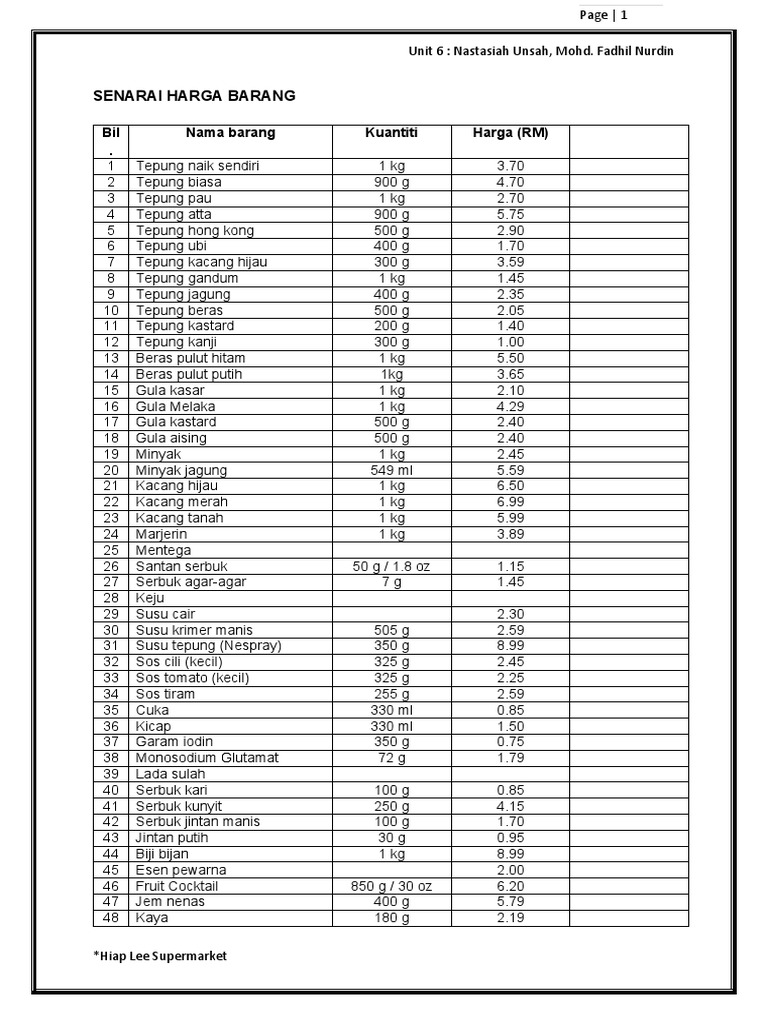 Senarai Harga Barang Runcit 2020 Terkini Spa