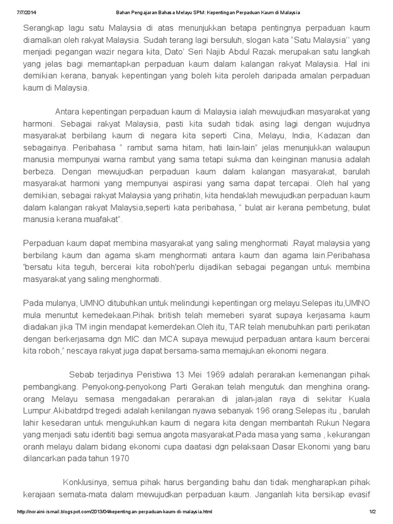 Contoh Karangan Kepentingan Perpaduan Kaum Di Malaysia Docx Contoh Karangan Kepentingan Perpaduan Kaum Di Malaysia 1 Malaysia Slogan Yang Telah Course Hero