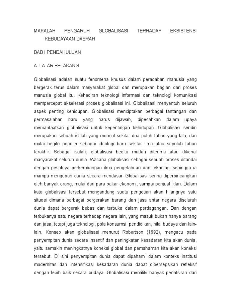 Makalah Pengaruh Globalisasi Terhadap Eksistensi Kebudayaan