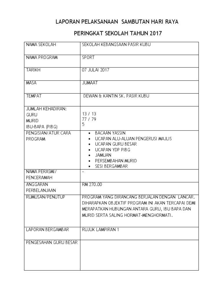 Laporan Sambutan Hari Raya Peringkat Sekolah