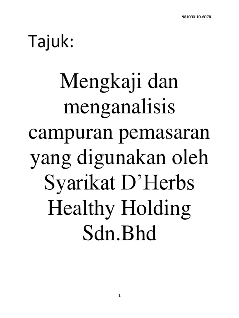 Dherbs Docx A Latar Belakang Syarikat Pertubuhan Awal Syarikat D Herbs Holdings M Dahulu D Herbs Healthy Marketing Ditubuhkan Pada September 2010 Pada Course Hero