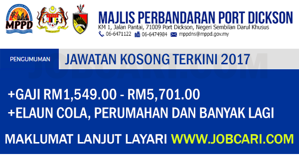 Iklan jawatan kosong majlis perbandaran port dickson permohonan adalah dipelawa daripada warganegara malaysia yang berumur tidak kurang daripada 18 tahun untuk mengisi kekosongan jawatan seperti berikut. Jawatan kosong terkini majlis perbandaran port dickson. Port dickson municipal council or majlis perbandaran port dickson has been proclaimed as municipal council on 2 february 2002. Portal jawatan kosong kerajaan ingin berkongsi maklumat peluang pekerjaan yang kini dibuka di majlis perbandaran port dickson dan kepada warganegara malaysia yang berminat serta berkelayakan dipelawa untuk mengisi kekosongan jawatan ini seperti berikut.