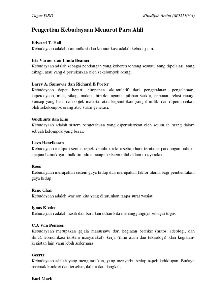 Doc Definisi Kebudayaan Menurut Para Ahli Har Anca Academia Edu