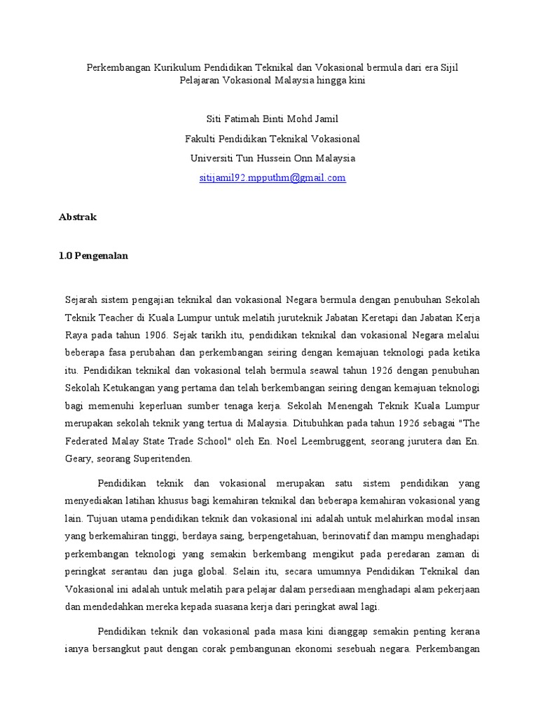 Perkembangan Kurikulum Pendidikan Teknikal Dan Vokasional Bermula Dari Era Sijil Pelajaran Vokasional Malaysia Hingga Kini