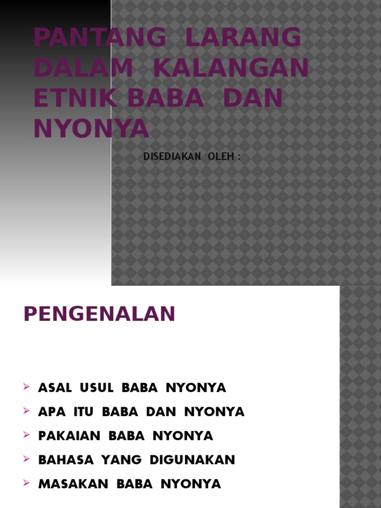Dokumen Tips Presentation Sejarah Pantang Larang Dalam Kalangan Etnik Baba Dan Nyonya