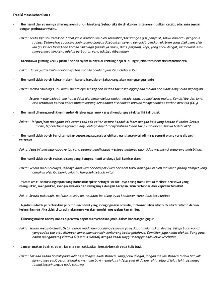 Pernah dengar pantang larang ibu mengandung supaya jangan makan telur separuh masak kerana dikhuatiri akan melahirkan bayi tak cukup bulan. Durian banyak vitamin ok yang bagus untuk ibu mengandung dan bayi. Hari menghantar cincin ditetapkan. Dilarang untuk memaku atau memahat dan menggali lubang serta memukul binatang.