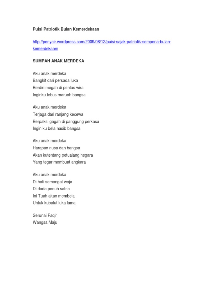 Merdeka Sajak Kemerdekaan Yang Menyentuh Hati