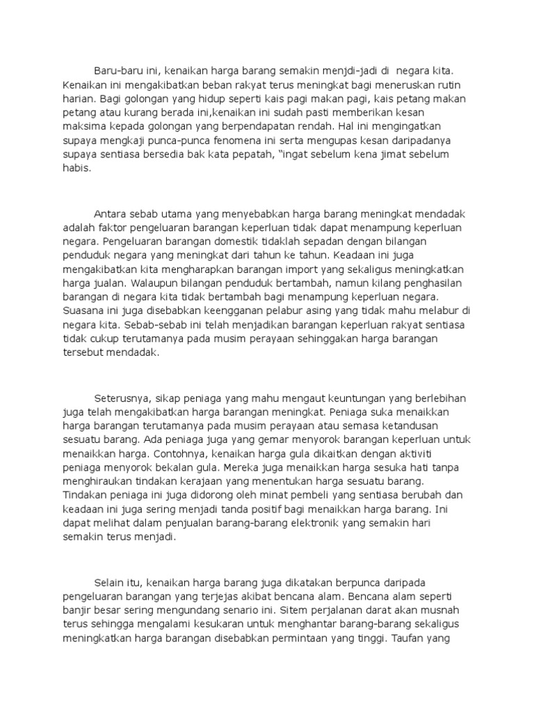 Karangan Punca Dan Kesan Kenaikan Harga Barang Docx