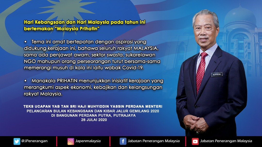 Jabatan Penerangan Malaysia V Twitter Ucapan Yab Perdana Menteri Yab Tan Sri Dato Haji Muhyiddin Bin Haji Mohd Yassin Semasa Majlis Pelancaran Bulan Kebangsaan Dan Kibar Jalur Gemilang 2020 2 3 Malaysiaprihatin Merdekamoment